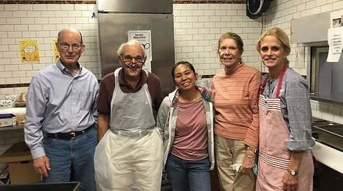Once a month we serve dinner at a men's shelter in Stamford called Pacific House. You can sign up to provide food for the meal or to serve. Every time, we have loads of fun in the kitchen and chatting with the guys.